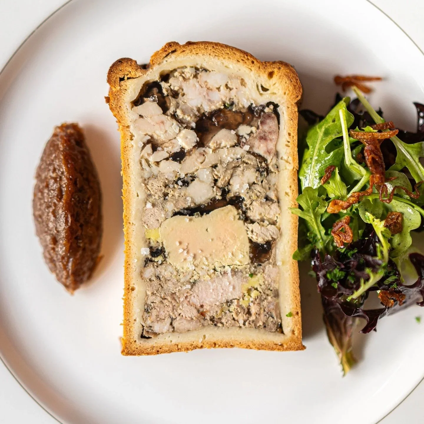 Parmi les incontournables, le pâté en croûte au foie gras de canard et ris de veau reste une référence, sacré Champion du monde du pâté en croûte. À cela s’ajoutent les accompagnements à partager, qui participent pleinement à l’expérience : des pommes de terre grillées et un gratin de pâtes à la béchamel, généreusement déposés au centre de la table. Des plats simples, réconfortants, pensés pour être partagés et prolonger ce moment de convivialité.